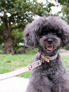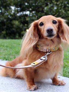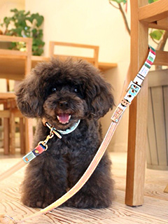 ヌメ本革を主にして作られたファッショナブルなリードと首輪。
